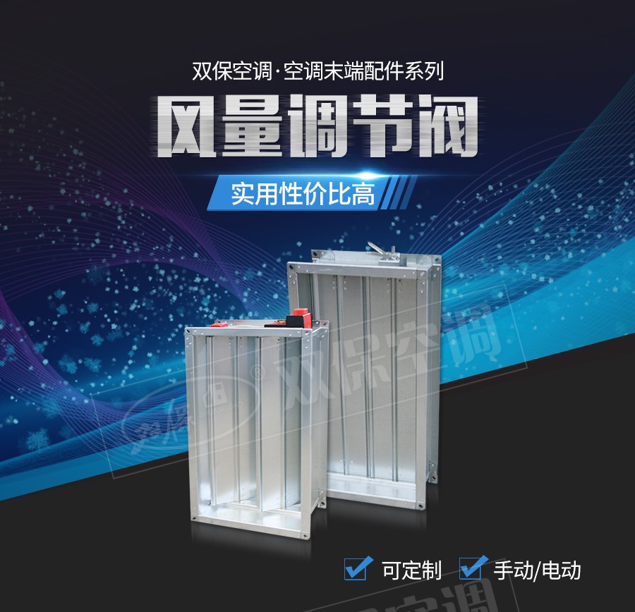 江蘇雙保空調有限公司—風量調節閥是工業廠房民用建筑的通風、空氣調節及空氣凈化工程中不可缺少的中央空調末端配件,一般用在空調、通風系統管道中,用來調節支管的風量,也可用于新風與回風的混合調節。